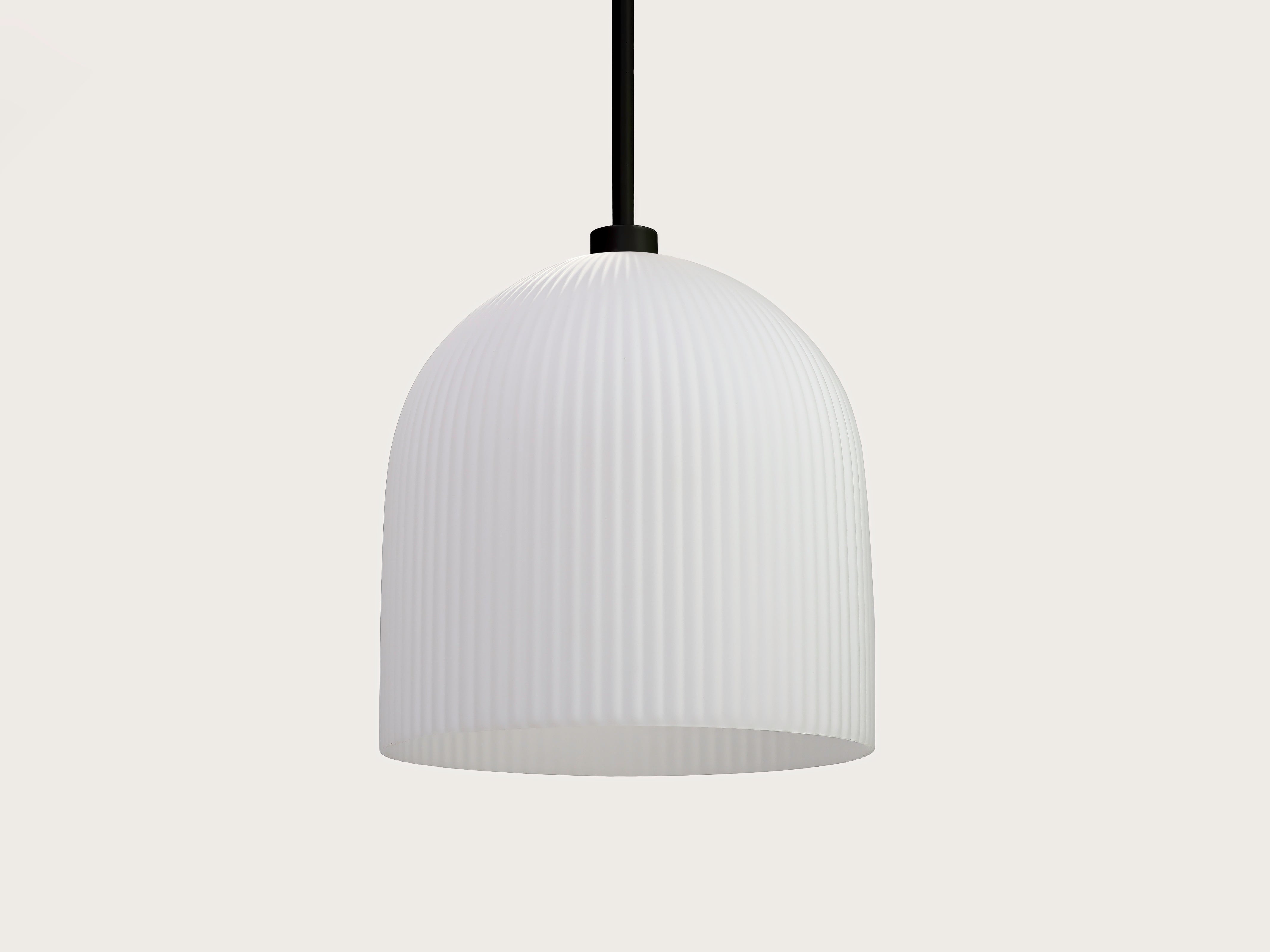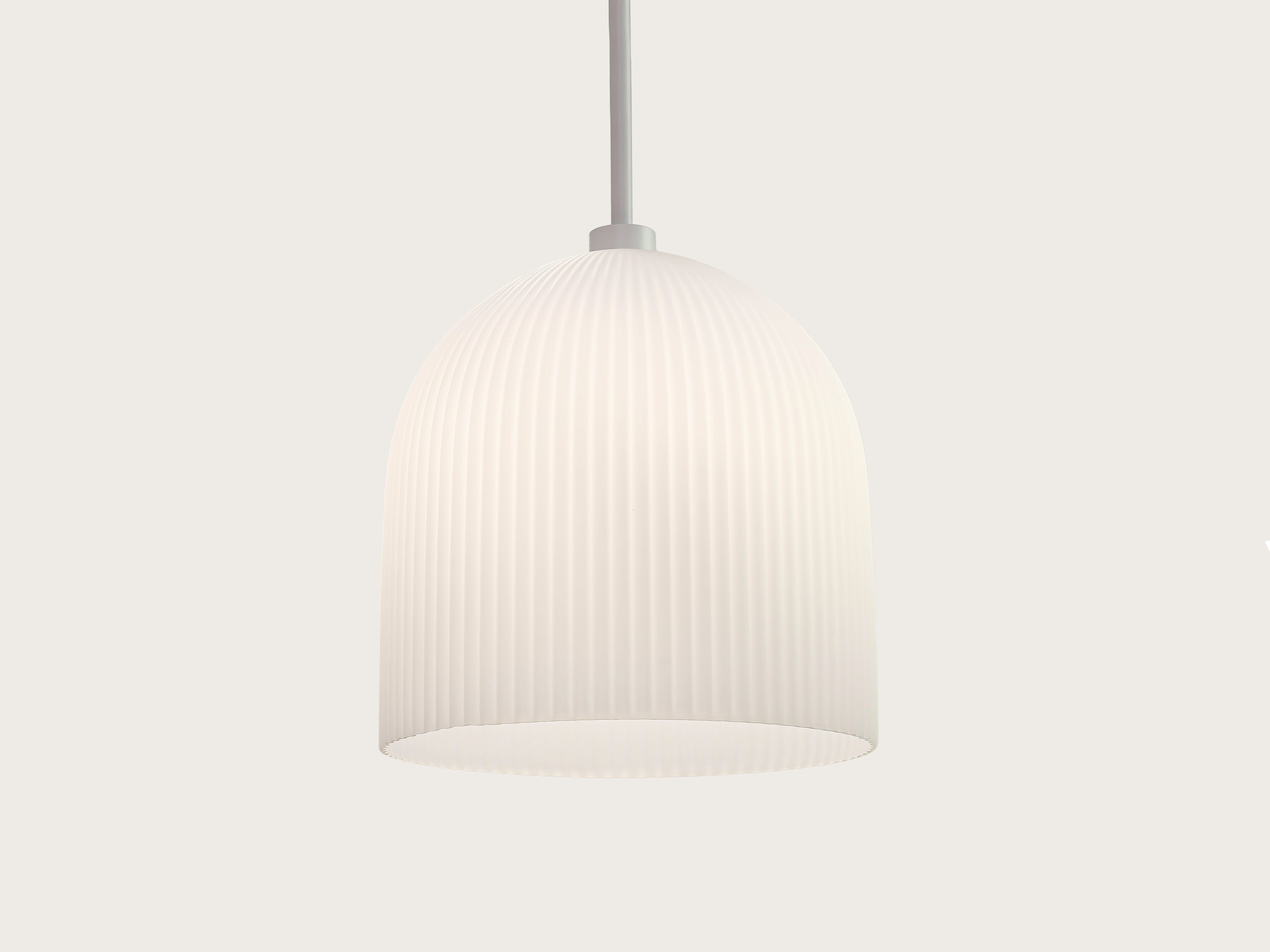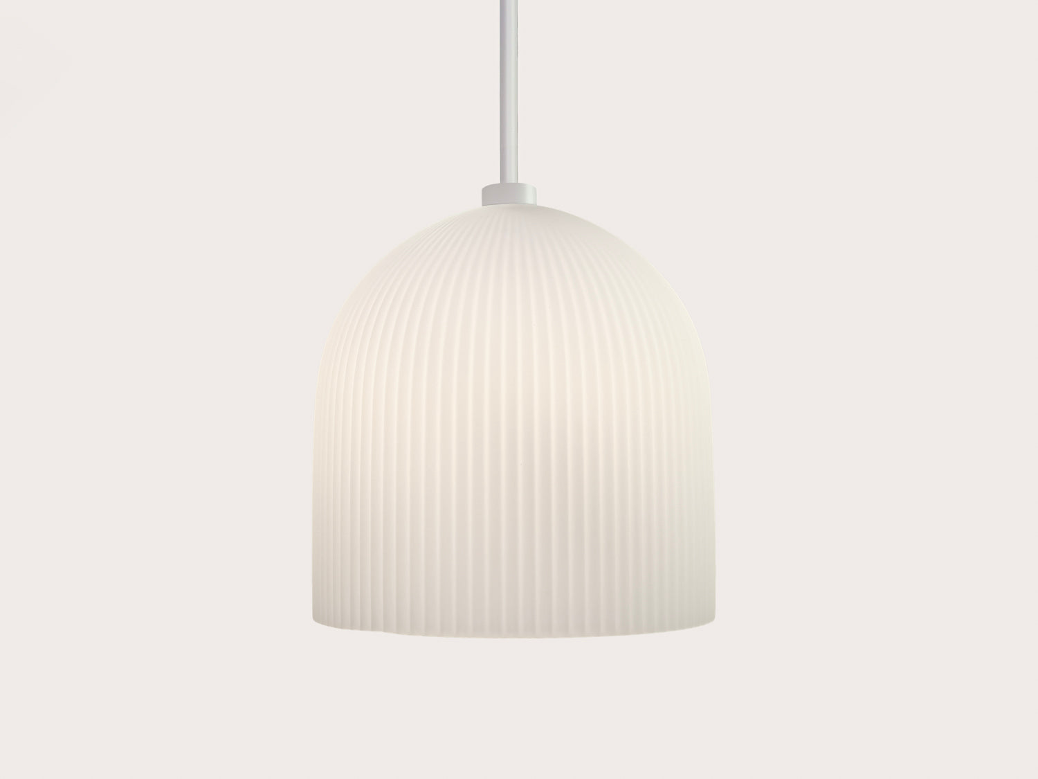 The ribbed opal glass in our Vienna Pendant creates a stunning diffused, broad spread light that is simply gorgeous.