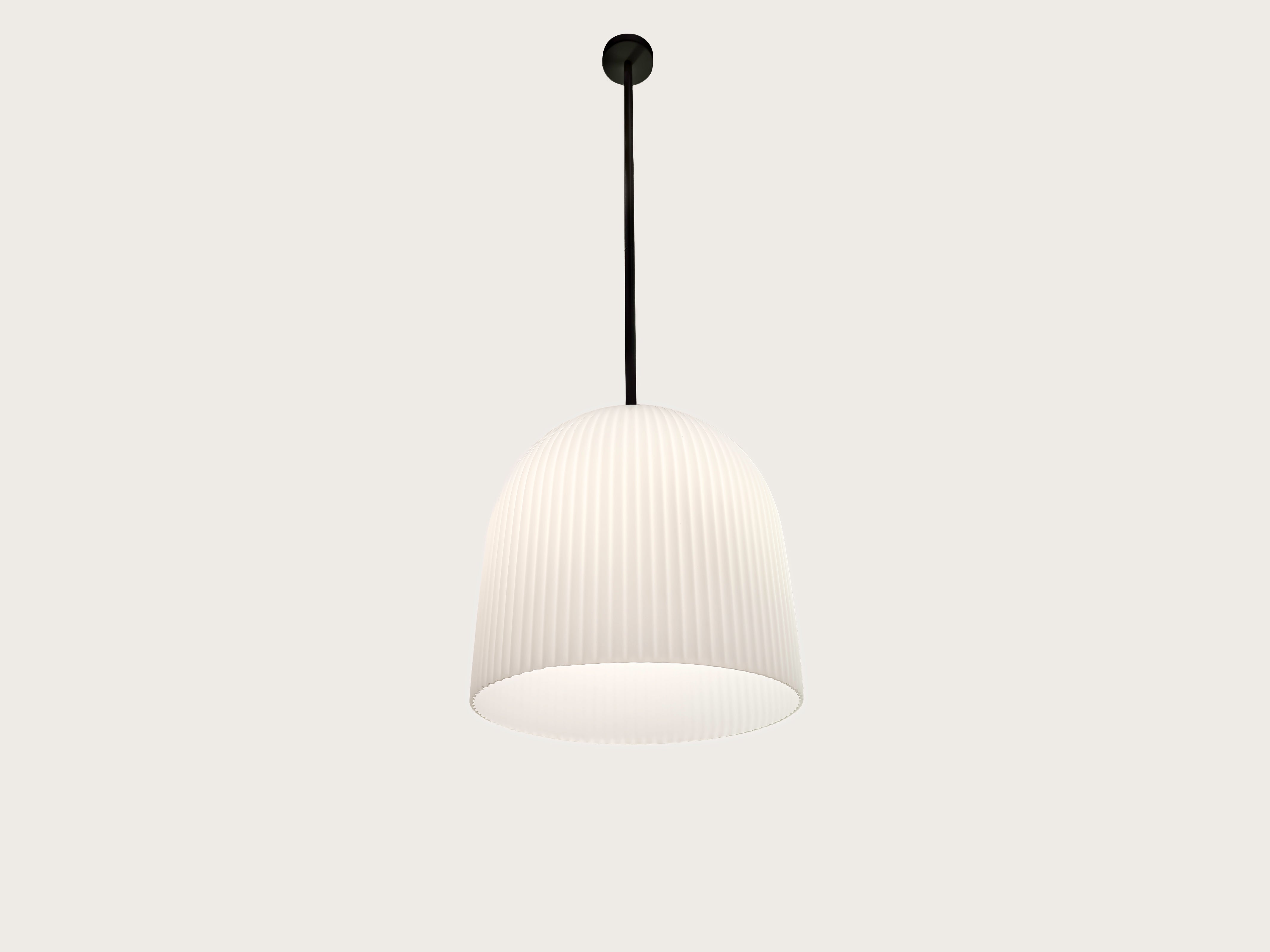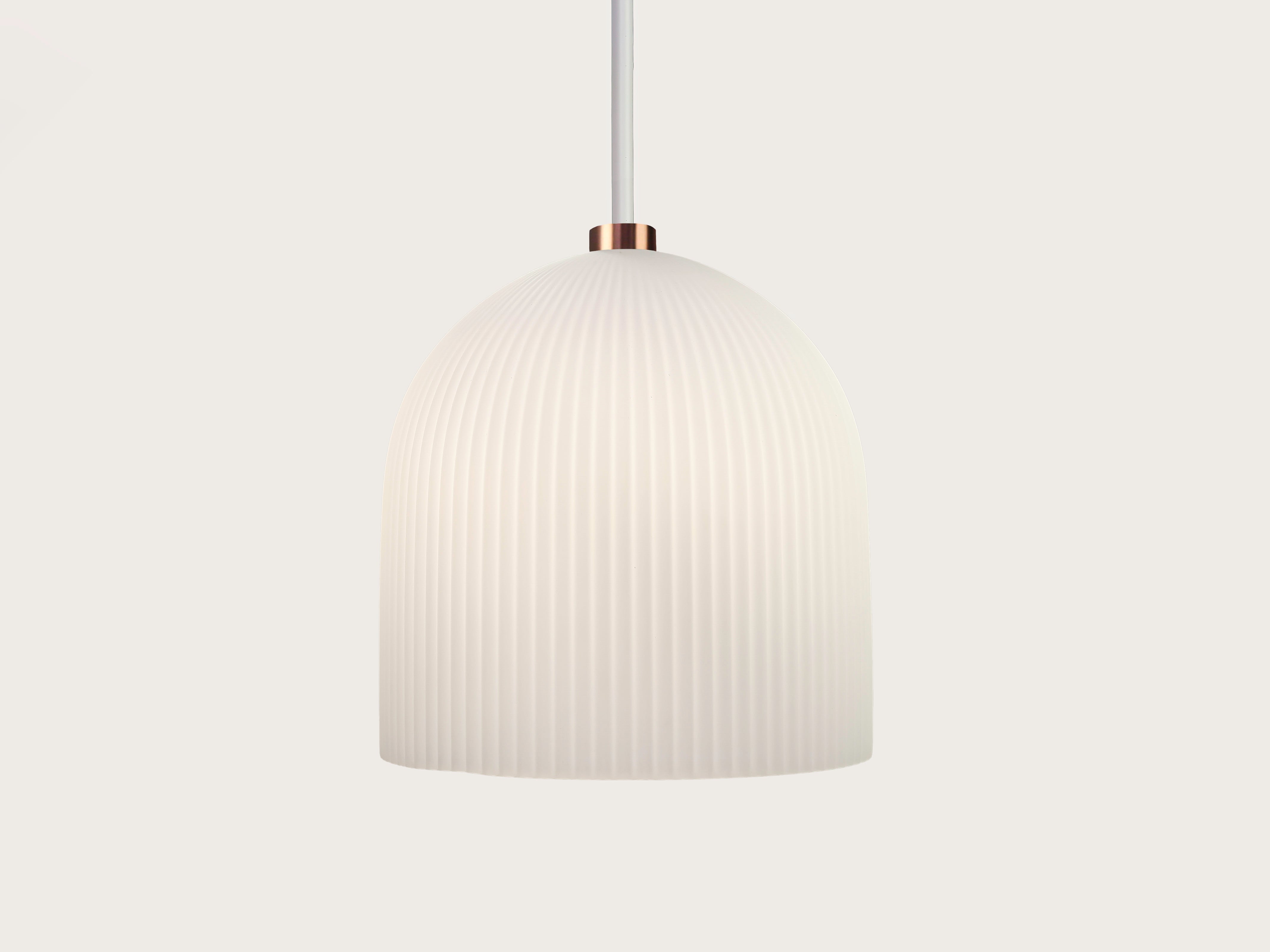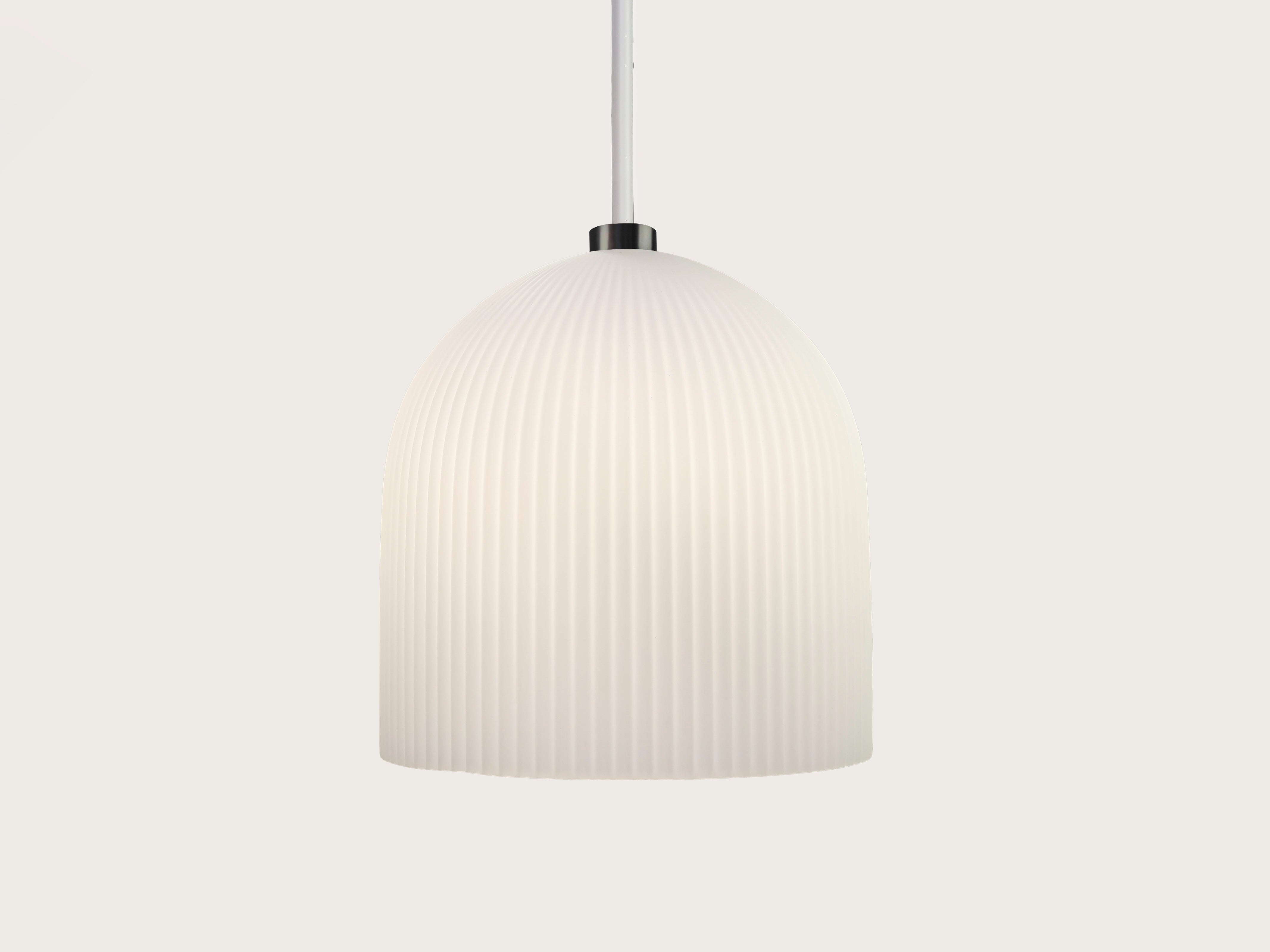 The ribbed opal glass in our Vienna Pendant creates a stunning diffused, broad spread light that is simply gorgeous.