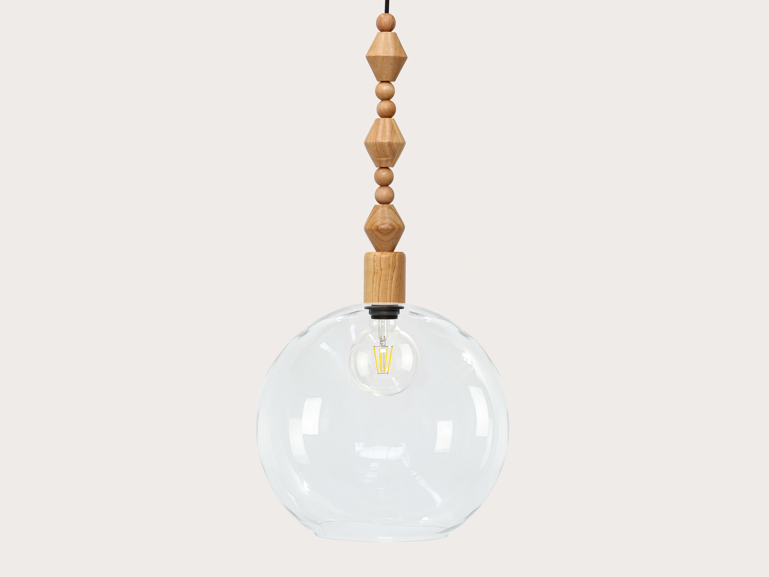 Apothecary 40cm Round Glass Wooden Boho Pendant