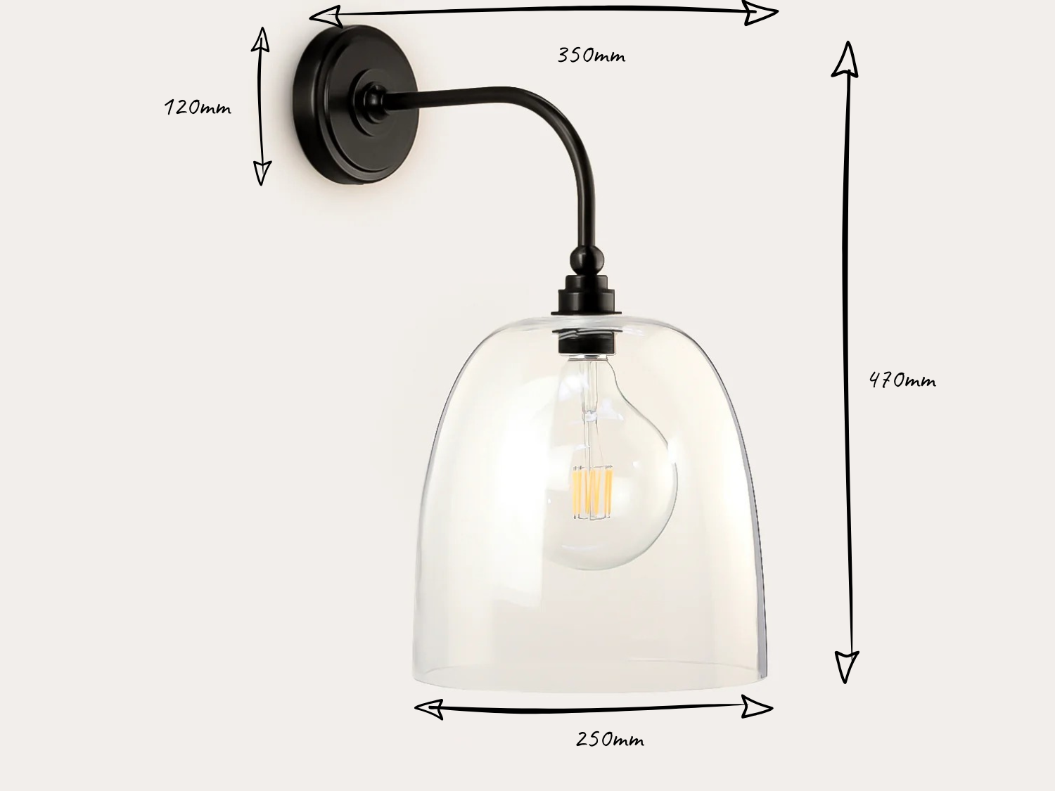 Arthur Long Arm Wall Light with 25cm Glass Cloche Shade