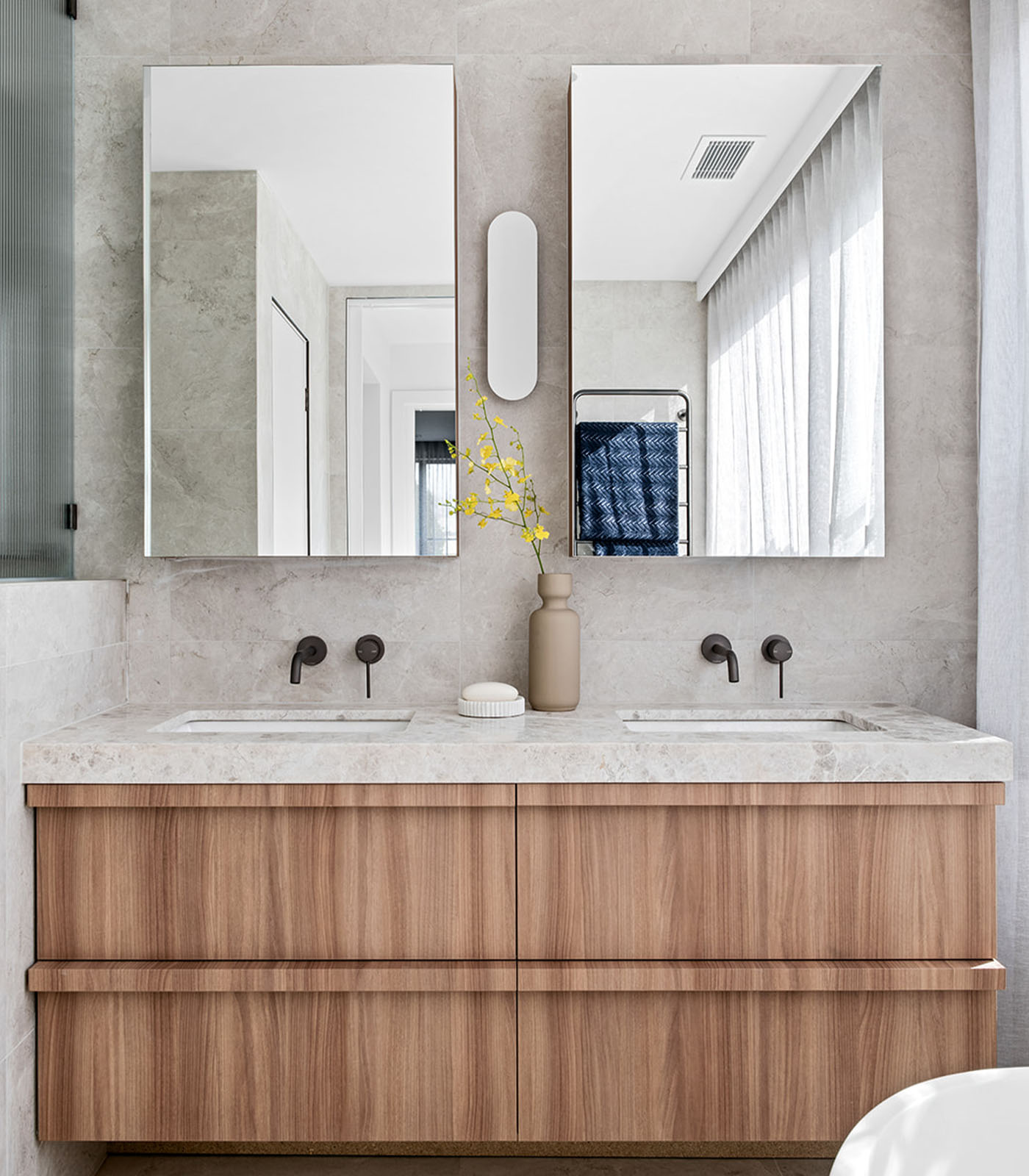 The Shadow Long Wall Light by Lighting Republic features a diffused light that exerts a halo-like illumination from behind the elongated flat shade to create soft lighting.