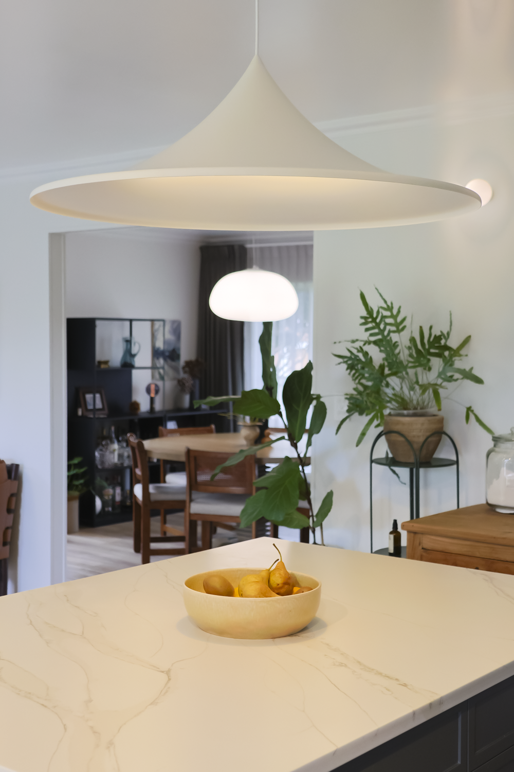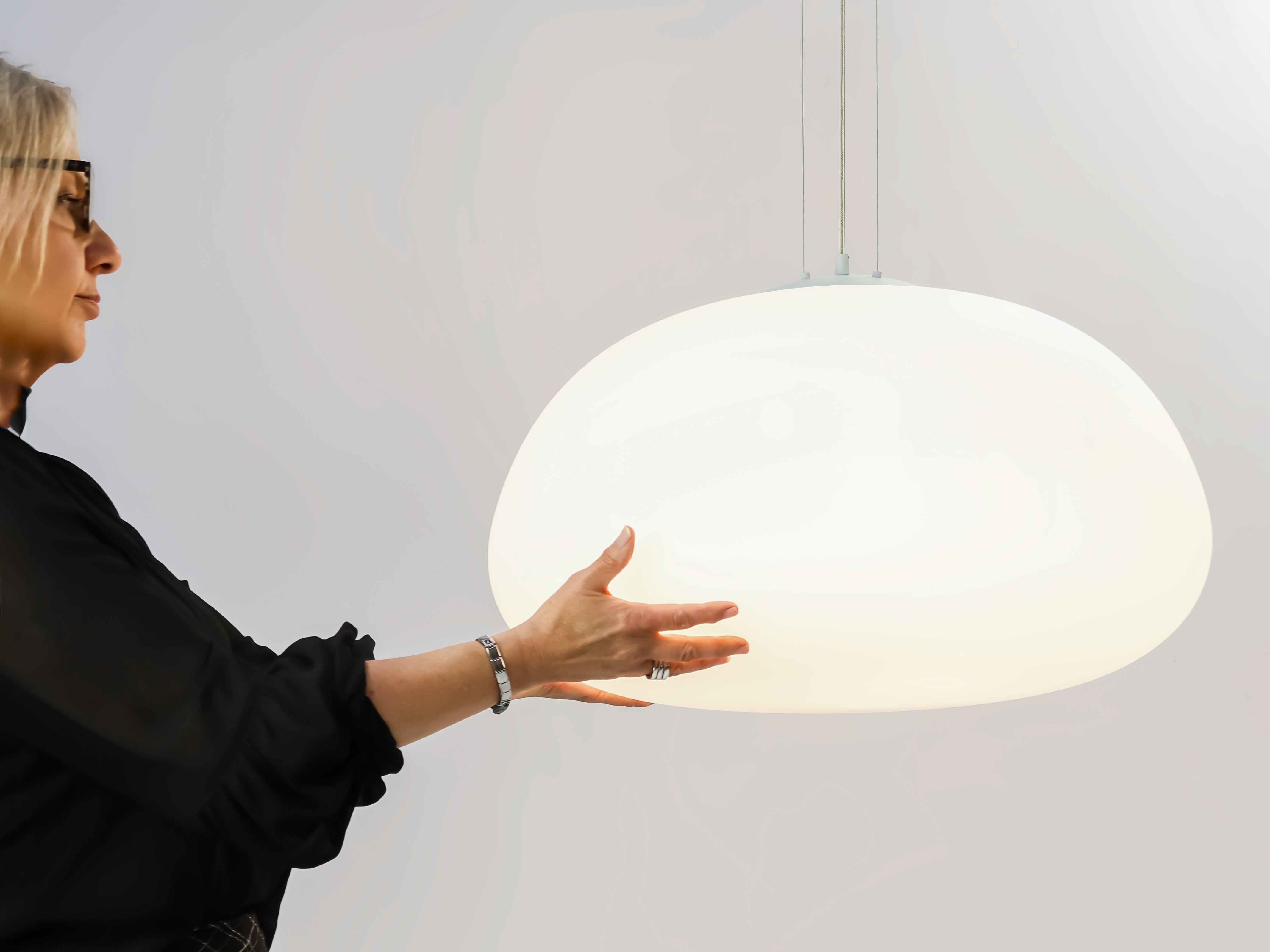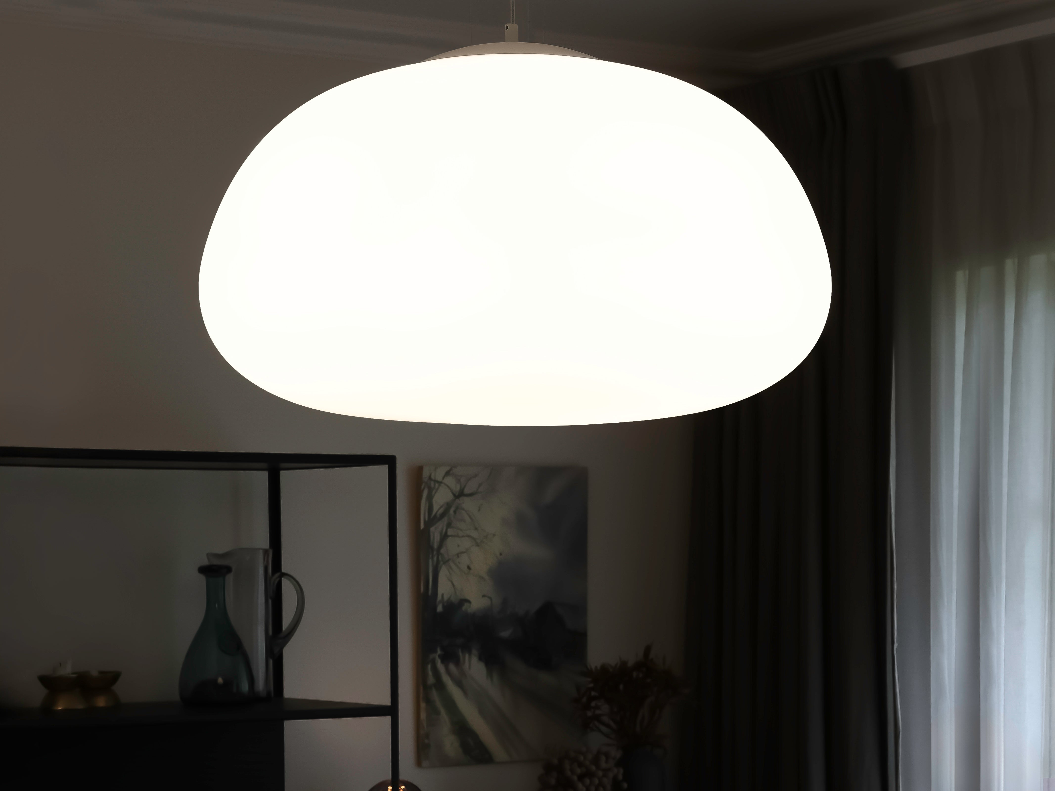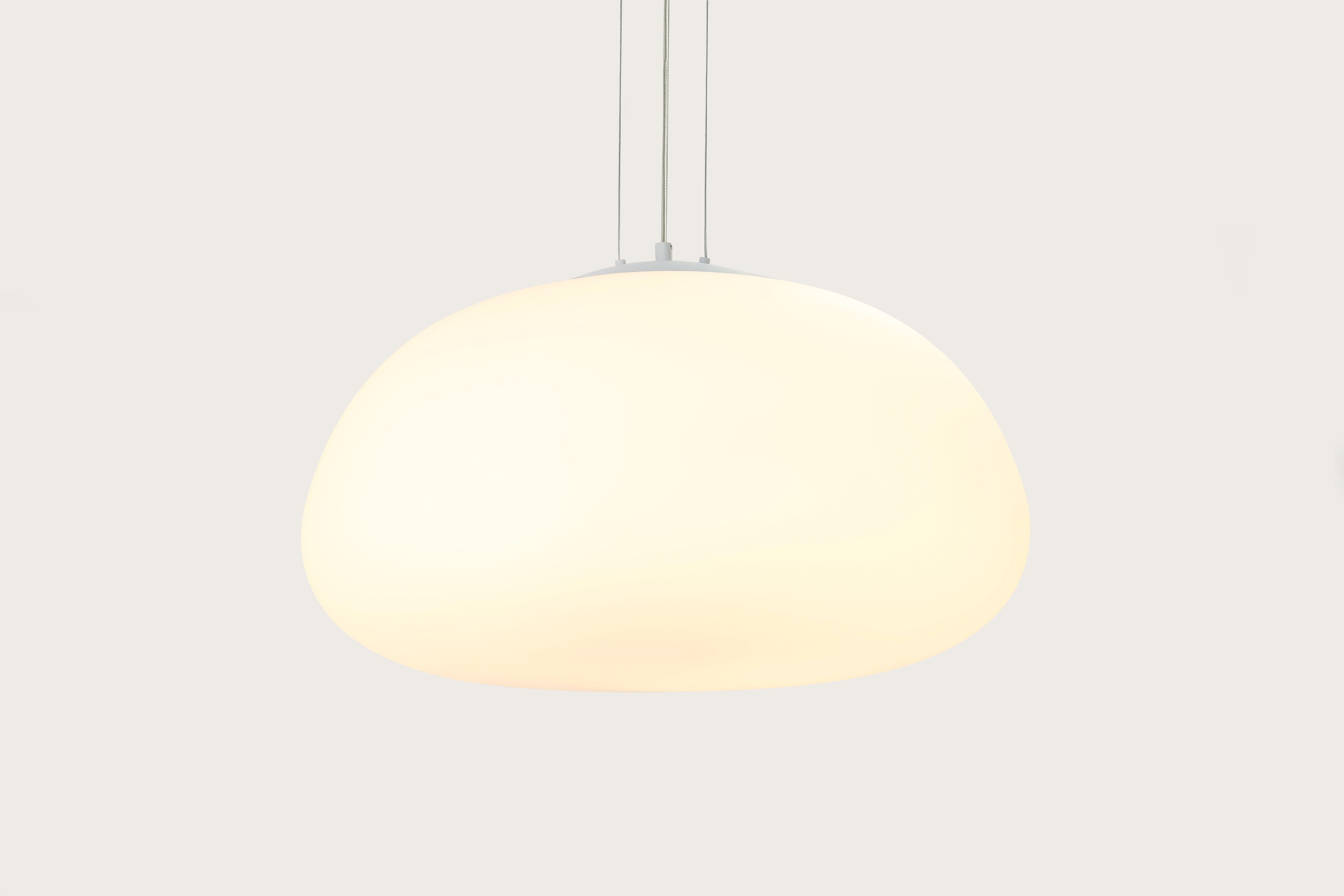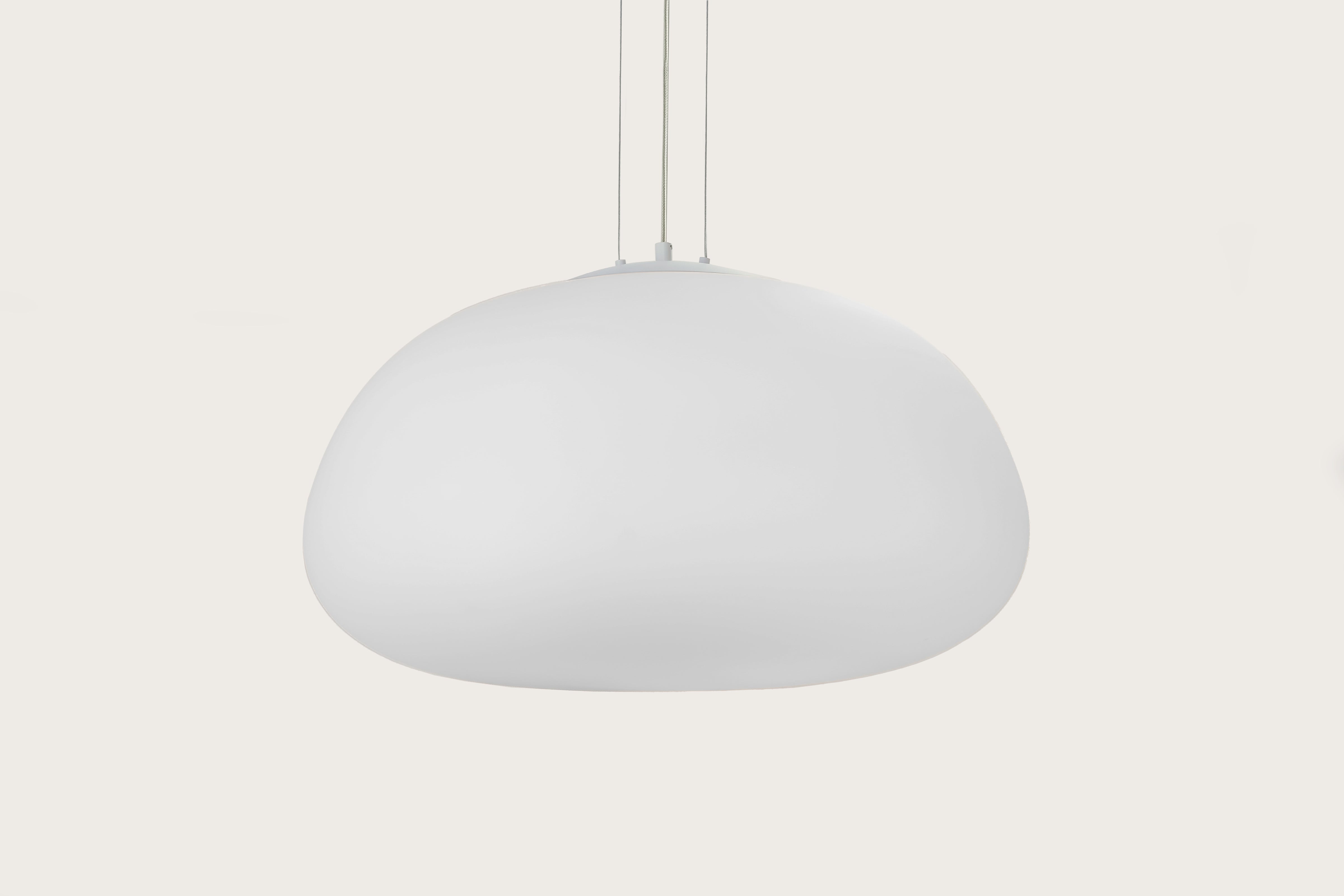 Reggie is a magnificent feature pendant; matt opal glass and an elegant organic shape.