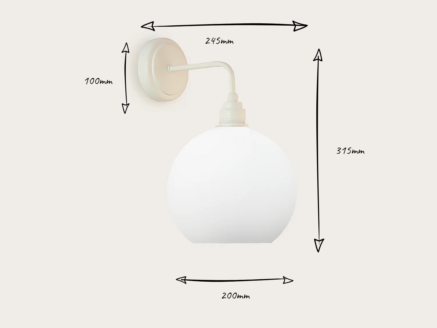 Arthur Short Arm Wall Light with 20cm Apothecary Opal Round Glass Shade