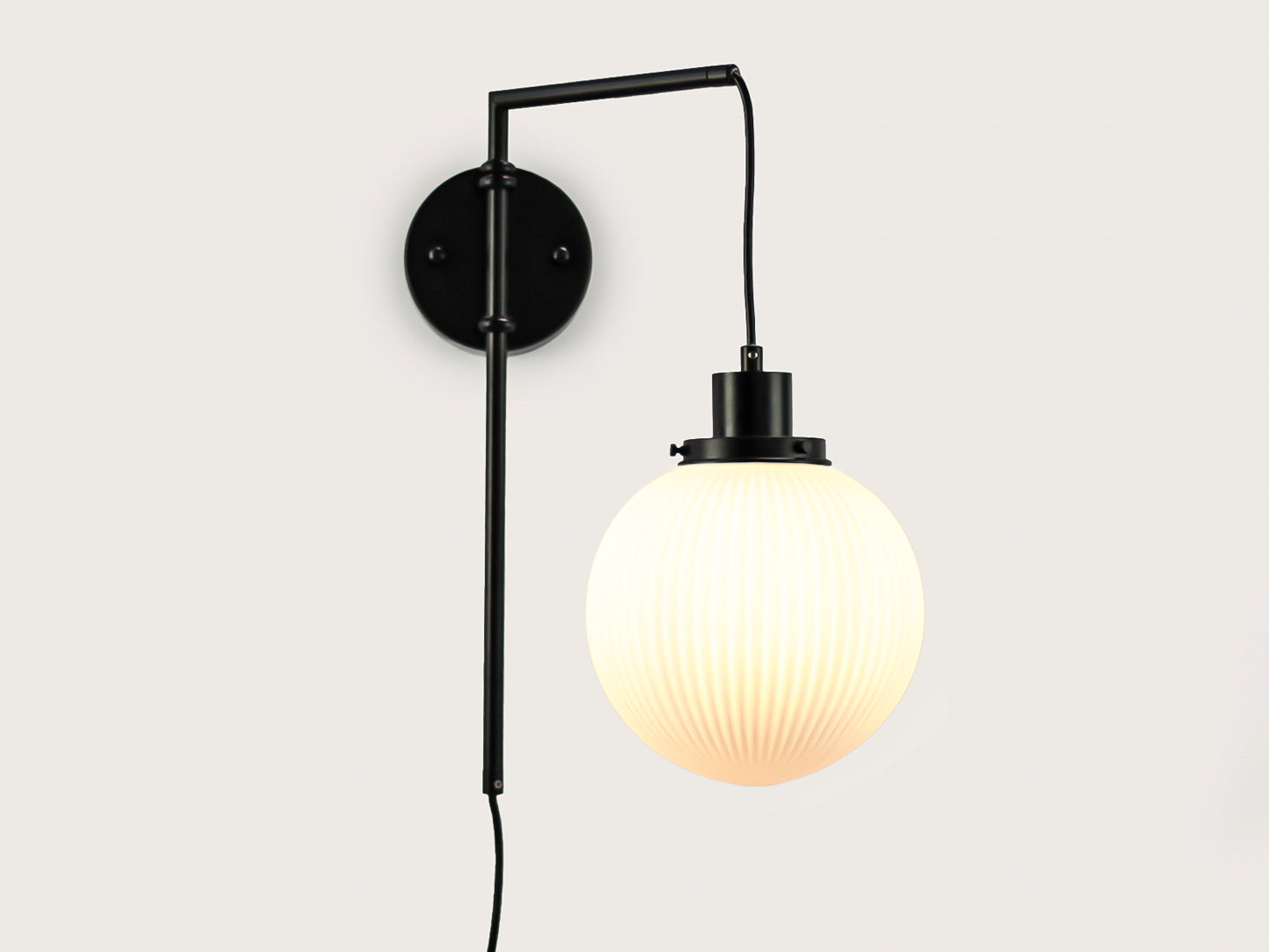 Frankie Swing Arm Wall Light with 20cm Apothecary Opal Round Glass Shade